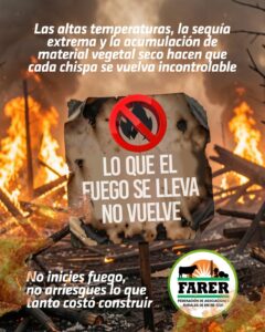 Finalmente, FARER solicita que ante cualquier columna de humo o foco de incendio se dé aviso inmediato a los bomberos o autoridades locales, recordando que la detección temprana puede evitar consecuencias irreparables.