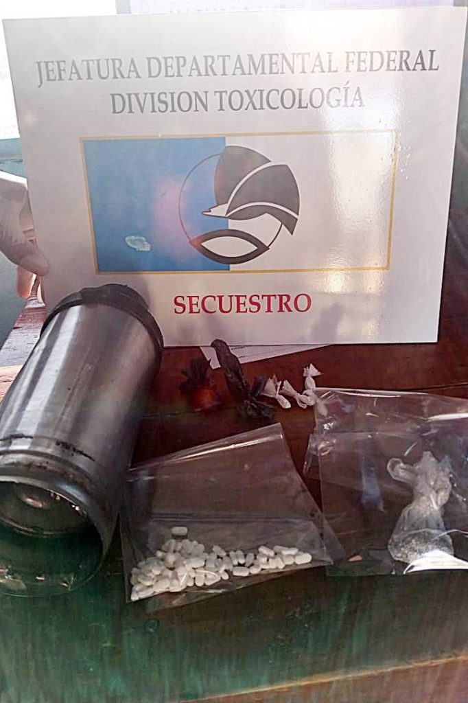 La División Toxicología de Jefatura Departamental tomó intervención en la Unidad Penal N° 8, donde concurrió a solicitud del Servicio Penitenciario, procediendo al secuestro de 4 envoltorios de nylon transparente, conteniendo sustancia estupefaciente Cocaína, que arrojó un peso de 0,9 gramos; dos envoltorios de nylon de color negro, con sustancia estupefaciente Marihuana (4 gramos) y comprimidos de color blanco, con forma oval, que se tratarían de psicofármacos, siendo 30 trozos de pastillas y 52 comprimidos enteros.