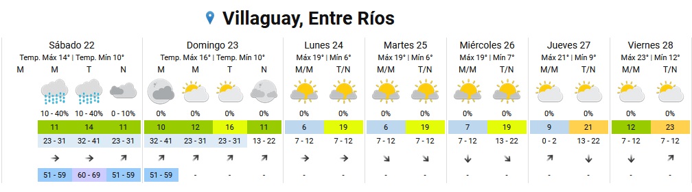 Según lo estimado por el organismo, para este sábado se espera cielo nublado y algunas lloviznas durante la mañana y tarde. La máxima estará en los 14 grados y la mínima en 10º.
