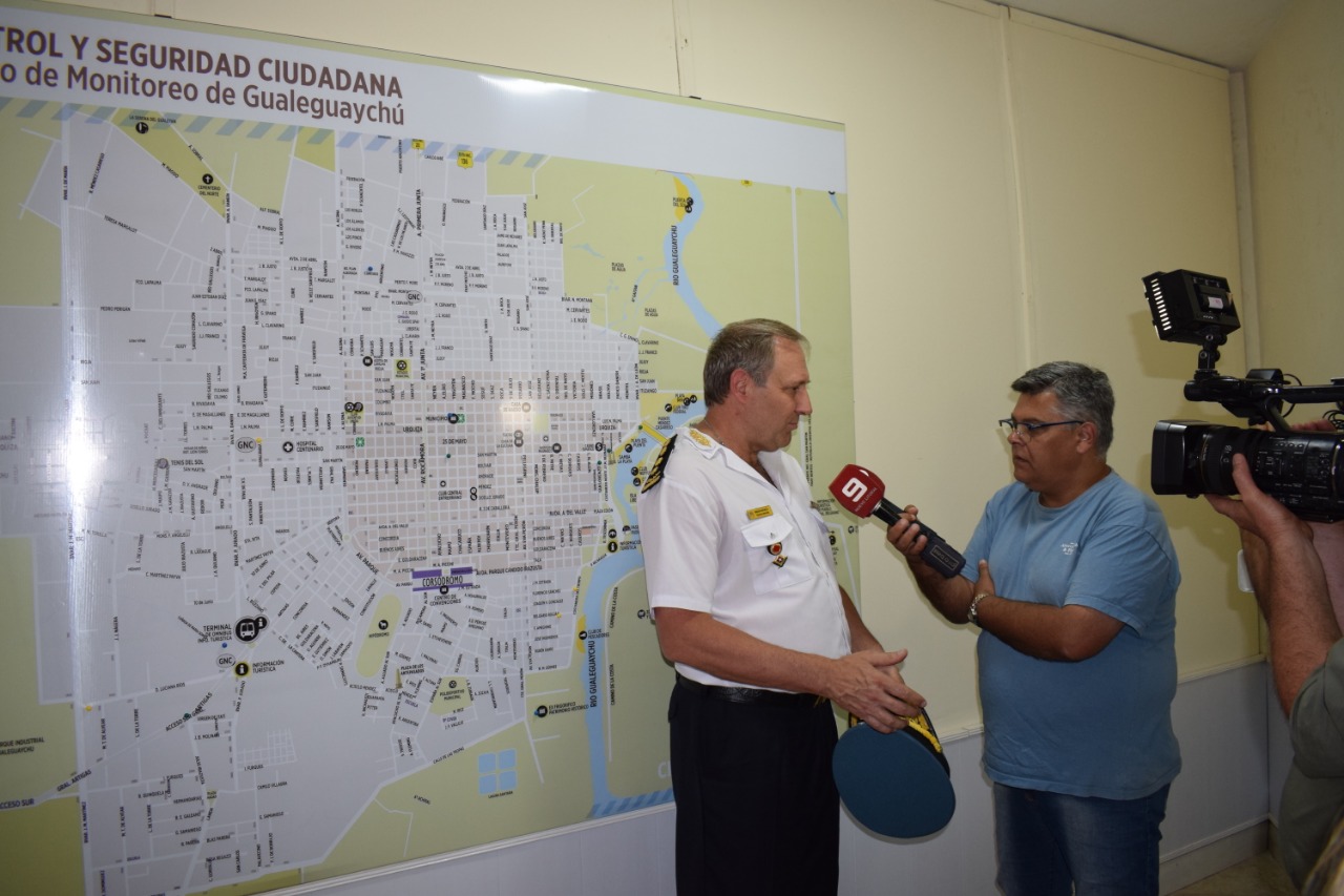 En la mañana de hoy Martes a las 10:00 horas se llevó a cabo el acto inaugural del centro de control y monitoreo de Gualeguaychú, el que contó con la presencia del Jefe de Policía de la Provincia de Entre Ríos Crio. Gral. Gustavo Maslein, Presidente Municipal Dr. Esteban Martín Piaggio, Senador Nacional Alfredo De Angeli, secretario de relaciones institucionales de la provincia de Entre Ríos Cr. Germán Grané, el Viceintendente Municipal y presidente del Honorable concejo Deliberante Dr. Jorge Maradey, Intendente de Pueblo General Belgrano Mauricio Davico, el jefe de policía Departamental Gualeguaychú Comisario Mayor Carlos Fabián Pérez, el Secretario de Gobierno Dr. Ignacio Farfán, jefes de las Fuerzas Armadas y de Seguridad, funcionarios y Funcionarios municipales y provinciales.