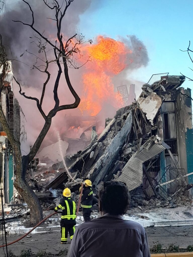 En horas de la tarde continuaban trabajando en el lugar, donde indicaron que hubo pérdidas totales, derrumbe del local y casa en la planta superior, pero que no hubo personas lesionadas.