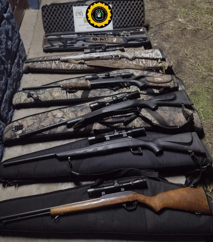 Este último fin de semana, en distintos operativos de prevención realizados en zona rural de la Provincia de Entre Ríos, arrojo como resultado de los mismos, el secuestro de 24 veinticuatro armas de fuego, de distintos calibre, cartucheria, y elementos prohibidos como silenciadores; la totalidad de los procedimientos se enmarcaron tanto en Infracción a la Ley Provincial de Caza N° 4841, como así también por el delito Tenencia Ilegal de armas de fuego, estipulado en el artículo 189 bis del Código Penal Argentino, en concordancia con la Ley Nacional de Armas y Explosivos.