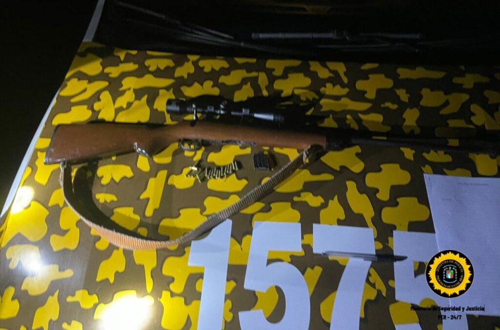 Este miércoles en horas de la noche, personal de la Brigada de Prevención Delitos Rurales Gualeguaychú, junto a personal de Comisaría Larroque, montaron un operativo en camino Rojas, debido a que vecinos habían alertado al funcionario del Destacamento Pehuajó sobre la presencia de un vehículo marca Fiat Siena, que había sido dejado estacionado en el camino, y sus ocupantes habrían descendido de forma peatonal con un arma de fuego; pocos minutos después, los uniformados logran observa salir del campo a dos personas que fueron inmediatamente identificadas, ambos oriundos de la ciudad de Gualeguaychú, a quienes se les pudo constatar que uno de ellos poseía en su poder una carabina .22 , que al momento del control carecía de su documentación (C.L.U, Carnet de tenencia), por tal motivo el fiscal en turno Dr. Martin Gil, dispuso el secuestro de una (01) Carabina Calibre .22, y veinte (20) cartuchos Calibre .22, por el delito de tenencia ilegal de arma de fuego, quedando los identificados supeditados a la causa judicial.