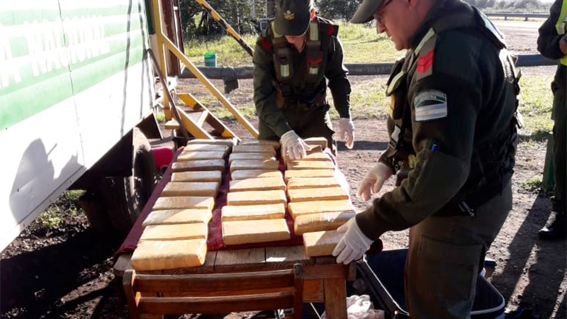 Incautaron 29 paquetes de marihuana en el interior de una valija, durante un control de gendarmes del Escuadrón 4 «Concordia» en el puesto fijo ubicado en la intersección de rutas nacionales 14 y 18. La droga, la cual arrojó un peso total de 21 kilos 851 gramos, era trasladada en un transporte público de pasajeros que circulaba desde Misiones hacia la Ciudad Autónoma de Buenos Aires.