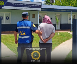De manera inmediata, el detenido fue trasladado a la Jefatura Departamental Colón, donde quedó alojado a disposición de las autoridades judiciales intervinientes.