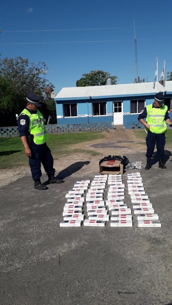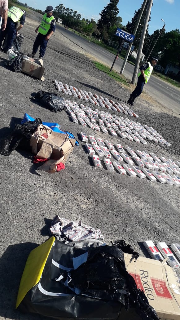 Con motivo de los operativos de prevención pública que viene desarrollando la Dirección de Prevención y Seguridad Vial de acuerdo a los lineamientos dispuestos por el comando superior de la fuerza. En este caso en el puesto Caminero Paso telégrafo ubicado sobre ruta Nacional 12 km 646. en el dia de la fecha y siendo aproximadamente las 15:hs, en circunstancias que personal de este se encontrarba realizando operativo de rutina de Prevención publica, se detiene la marcha de un micro de larga distancia con destino a la ciudad de Rosario provincia de Santa Fe, de la empresa Rapido Tata,se aprecia en la zona de baulera cinco(05) bolsos de grandes dimensiones en forma cuadrada, llamando la atencion por lo cual se le consulta a los choferes sobre los propietarios, siendo un masculino mayor de edad domiciliado segun su DNI en la ciudad de La Paz, acompañado por una femenina domiciliada en la ciudad de Santa Elena-La Paz, manifestando que en los bultos transportaban cigarrillos careciendo de documentacion respaldatoria de su origen, ante esto se pone en conocimiento a la Sec, Nº2 del Juzgado Federal de la Ciudad de Parana, a cargo del DR. Juan Andres Chaulet, el cual ordena es secuestro, identificacion y en caso de no haber impedimento, libertad supeditado a la causa, se contabilizan los cigarrillos arrojando un total de doscientos(250) cartones de diez (10) atados cada uno, haciendo un total de dos mil quinientos (2500) atados de veinte (20) cigarrillos cada uno