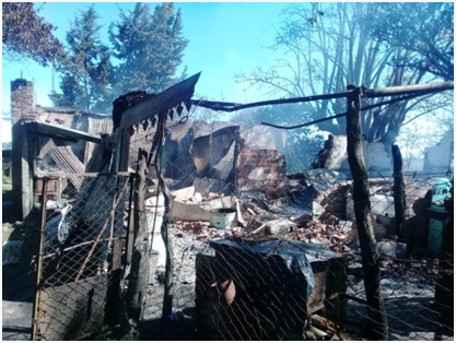Se trata de una vivienda situada a 500 metros al este de Escuela 99- Colonia La Blanquita- Lucas Sud Segunda, lugar habitado por un matrimonio de 69 y 72 años de edad. Según testimonios de sus propietarios estos se habían retirado en horas de la mañana regresando a las 12.30 horas aproximadamente, donde al ir llegando observan que salía humo de su vivienda y al llegar la misma ya había tomado fuego casi en su totalidad.