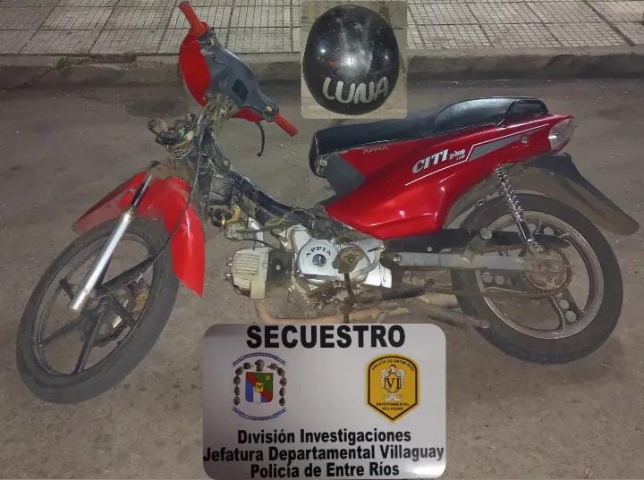 En horas de la madrugada de este Sábado 22 de julio, personal de la División Investigaciones que se encontraba de recorrida por calle Rivadavia, observan dos masculinos a bordo de una motocicleta la cual estaban tratando de encenderla. Al percatarse de la presencia del personal policial abandonan el rodado, emprendiéndose a la fuga. Procediéndose a lograr la localización de ambos masculinos y por otra parte al formal secuestro del rodado siendo una motocicleta marca APPIA, modelo CITI PLUS DE 110cc. Color rojo, con la faltante de plásticos.-