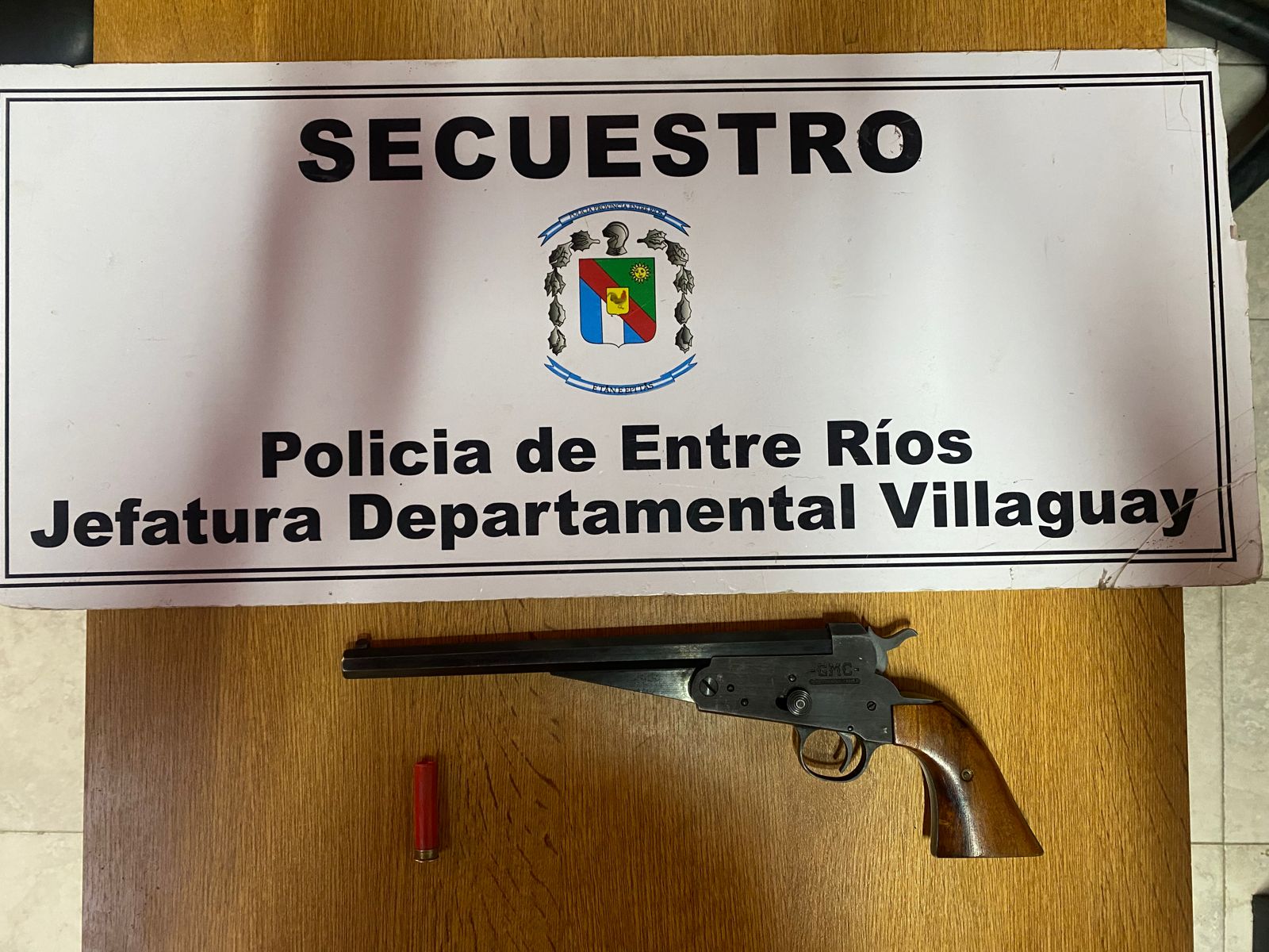 Posteriormente se observa dicho bulto el cual se trataba de una bolsa de nylon color blanca conteniendo en el interior (01) un arma de puño tipo pistón y (01) un cartucho color rojo. Dichos elementos se encontraban entre los elementos denunciados como sustraídos.-