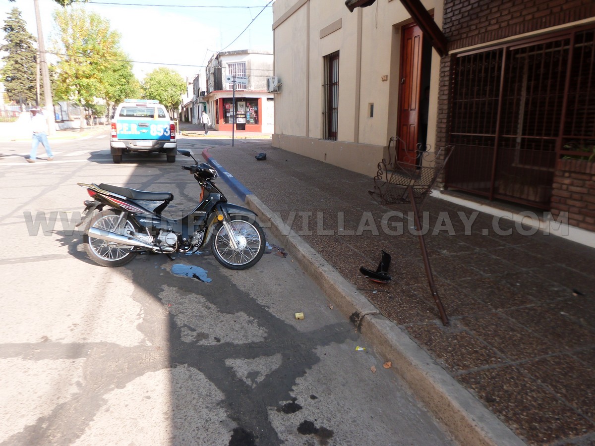 Alrededor de de las 09:30 horas se toma conocimiento de un accidente de tránsito en calle Dorrego. En el lugar se hacen presentes miembros del Comando Radioeléctrico, Oficial de Judiciales y personal del Gabinete Criminalística de esta Departamental. Allí una persona de sexo masculino de 28 años de edad, domiciliado en calle Córdoba de esta ciudad, que se conducía en una motocicleta marca Honda Wave dominio colocado 258-JPA, habría colisionado con un canasto de metal ubicado en la vereda, provocando lesiones en una de sus piernas.