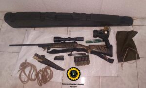 El primer procedimiento se llevó adelante este ultimo viernes por la tarde en zona del distrito Vergara Norte departamento Villaguay, donde los uniformados identificaron a un ciudadano que portaba un arma de fuego tipo carabina, infringiendo la Ley Provincial de Caza Nº 4841, en consecuencia procedieron al formal SECUESTRO: un (01) Fusil calibre 270, con mira telescópica, nueve municiones del mismo calibre, una cuchilla, soga, un reflector de mano, y dos bolsas caseras tipo maletas.