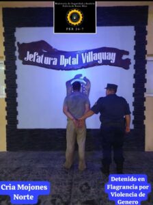 Presentes en el domicilio indicado por el llamante, personal policial perteneciente a dicha jurisdicción, es atendido por un hombre (40) quien se encontraba violento y con signos de evidente estado de ebriedad; el cual agredió a su mujer (31) manifestando la misma que estaba sufriendo violencia por parte de su pareja con un cinto. Por lo que inmediatamente se procedió a la aprehensión preventiva del ciudadano, comunicando al Fiscal en turno quien dispuso el traslado hacia Jefatura Departamental Villaguay , previa notificación de sus derechos, examen médico y paso por la Sección Antecedentes Personales; quedando alojado en el edificio policial por “Violencia de género en flagrancia”.-