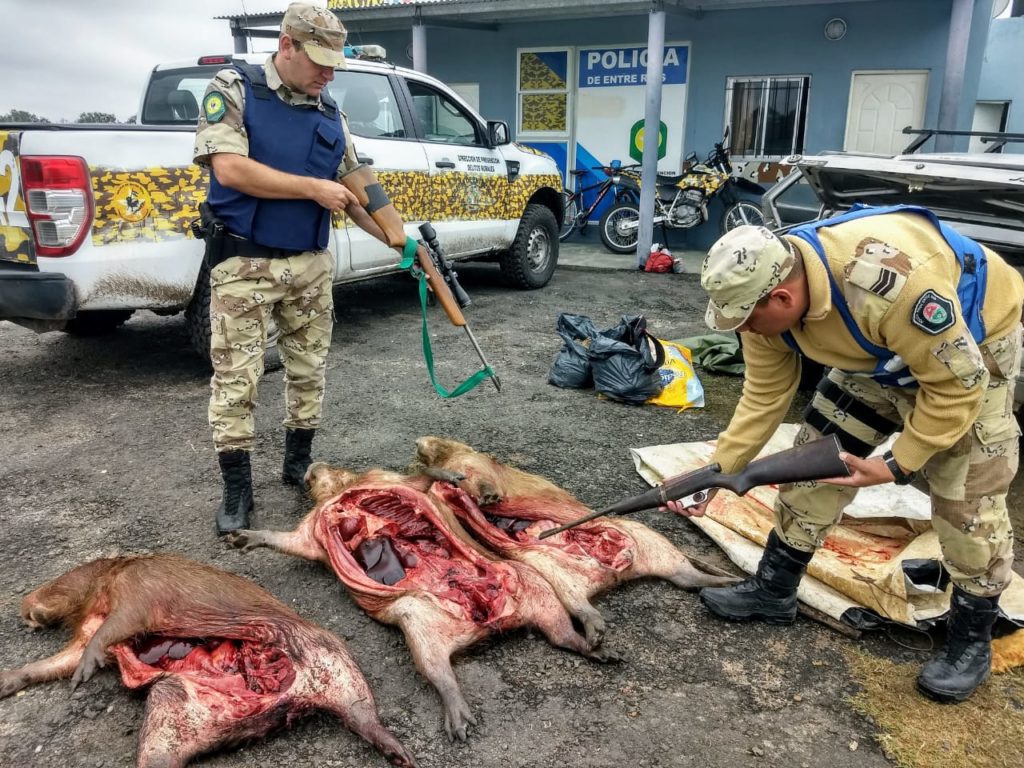En la mañana de este Domingo personal policial de Brigada Prevención Delitos Rurales La Paz logro interceptar y detener en Ruta Provincial N 1, un vehículo marca VOLKSWAGEN, modelo Senda, conducido por dos personas oriundo de la ciudad de La Paz; a quines luego del control de documentación personal y del rodado, se les constata en el interior transportaban dos armas de fuego largas, tratándose de UNA (01) CARABINA SEMI AUTOMÁTICA, CALIBRE 22, con documentación (Legítimo Usuario y Credencial de Tenencia) a nombre del conductor del rodado y la segunda: UNA (01) CARABINA SEMI AUTOMÁTICA del mismo calibre que la anterior, junto a TREINTA y siete (37) cartuchos calibre .22; arma de la cual carecian de todo tipo de documentación legal exigida por Ley; por lo que se iniciaron actuaciones con conocimiento de las autoridades judiciales, por el delito de Tenencia Ilegal de Armas de Fuego; así mismo se les constató que en el baúl del automóvil, trabsportaban TRES (03) CARPINCHOS FAENADOS Y EVICERADOS, especie que se encuentra prohibida. Se labro un Acta de Infracción a la Ley Provincial de Caza 4841, con el secuestro de la primer carabina; los dos ciudadanos quedaron involucrados a las causas referenciadas. mientras Que las piezas de casas Fueron entregados para su consumo.