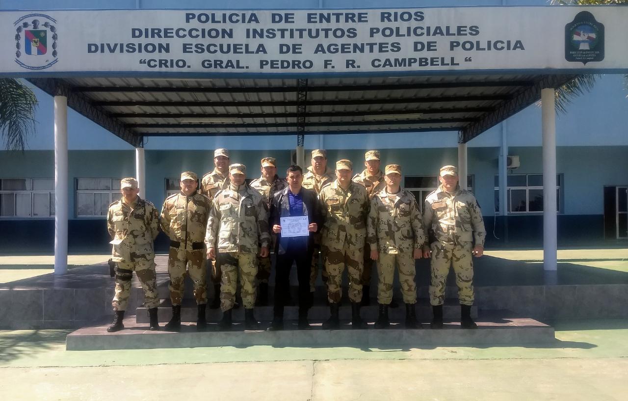 Personal policial dependiente de la Dirección Prevención Delitos Rurales, participó junto a personal de otras áreas de la Policía de Entre Ríos, y de Policías vecinas, cómo de la Provincia de Corrientes, Santa Fe, Buenos Aires, Neuquén, y Chaco; del primer «CURSO NACIONAL DE ESTRATEGIAS Y HERRAMIENTAS EN NEGOCIACION POLICIAL”, realizado en las Instalaciones de la Escuela de Agentes de Villaguay – Crío. General Pedro Fernando Ramón Campbell; dictado por personal del Grupo Halcón de la Policía de Buenos Aires a cargo del Comisario Inspector (R) Scalzo Jorge, como así también Negociador del Cuerpo de Operaciones Especiales y Rescate de la Policía de la Provincia de Río Negro, Sargento 1 Mandrin Marcelo; dicha capacitación tuvo la presencia de la Psicóloga de la Policía de Entre Ríos – Crío. Paula Martínez, y la presencia en su culminación del Sr. Jefe de Policía de Provincia – Crio. General Gustavo Maslein, y Director de Personal – Crío. General Sergio Rodríguez.-