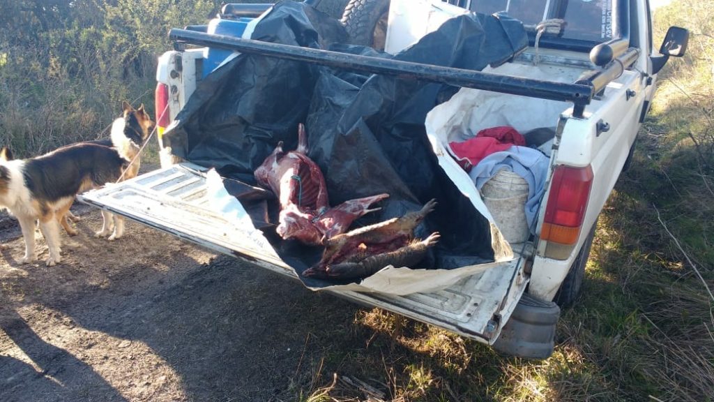 Personal policial de la Comisaria Mojones Norte momentos en que se encontraban de recorrida de prevención  junto con personal policial de la Brigada de Abigeato Villaguay perteneciente a la Dirección de Prevención Delitos Rurales, más precisamente por un camino vecinal de Colonia Adivinos, es que se encuentran con una camioneta Ford F 100 en la cual se conducían cuatro personas entre ellos un menor de edad, de la caja de la camioneta se puedo observar un Guazuncho eviscerado y cuereado, como también una mulita. Que además entre estas especies se pudo observar una carabina calibre 22 semiautomática súper 45, y una escopeta calibre 12/70. Consultado sobre la documentación de las armas, el conductor del rodado, oriundo de la localidad de Bovril, departamento La Paz, manifestó no poseer ningún documento sobre las mismas. Se comunico en forma inmediata con el fiscal en Turno, y se inicio actuaciones por Infracción al Artículo 189 Bis del C.P. Argentino, “tenencia ilegal de arma de fuego”  procediéndose al secuestro de las armas mencionadas, mientras que personal de la Brigada de Abigeato procedió a realizar procedimiento por la Ley de Caza Nº 4841.-