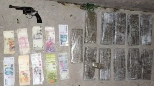 La mochila arrojada por los detenidos contenía 11 ladrillos de marihuana, con un peso total de ocho kilos y medio. Además, tenía un revolver calibre 32 con un cartucho y 220.000 pesos en efectivo.