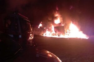 Se observaron daños totales en el sector destinado a la producción de espuma y la caída de cubierta y estructura metálica de un galpón de 20 metros de ancho por 30 de largo. Se hizo presente su dueño, Norberto De Bueno.