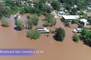 Las imágenes del drone permiten apreciar el avance del río sobre la Playa Nebel, cuyas rocas características resultan hoy invisibles. En tanto que las obras de la nueva costanera lisa y llanamente están desaparecidas. Apenas si alcanzan a observarse las columnas de alumbrado sobresaliendo.