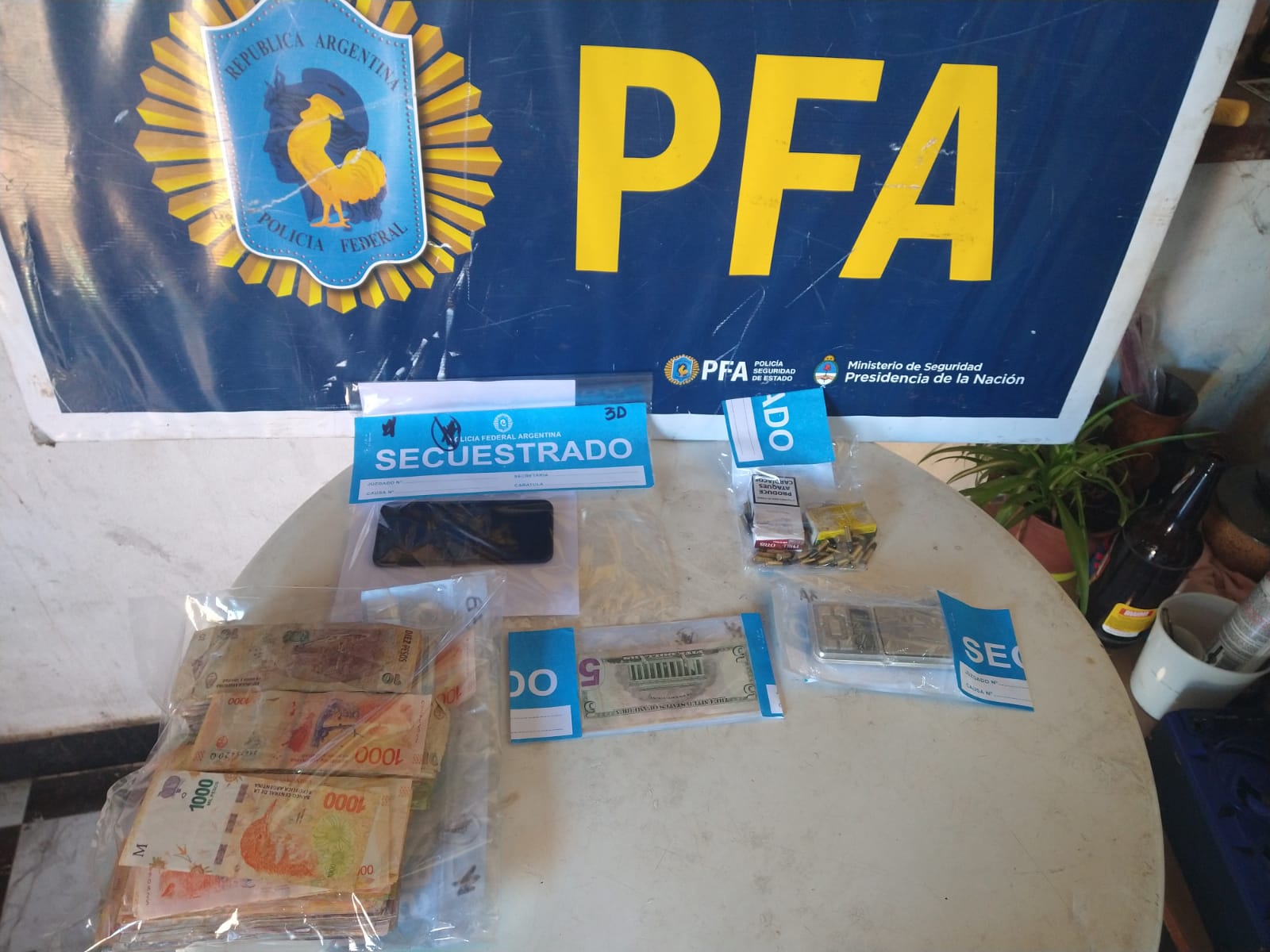 celulares, arma de fuego, municiones y una gran cifra de dinero en efectivo, y demás