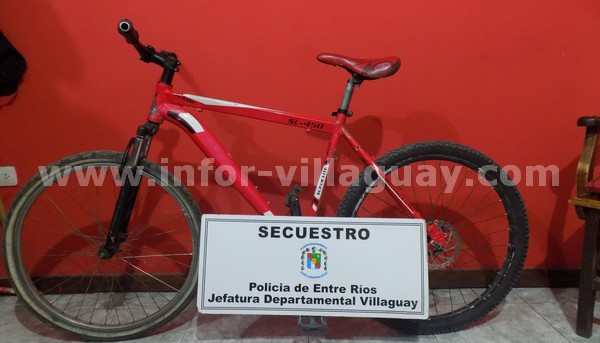 Tras encontrarse de recorrida personal de dicha División visualizan un grupo de jóvenes quienes se conducían en bicicleta, donde se pudo observar que uno de estos masculino se desplazaba en una de similares características a la sustraída, semanas atrás, siendo tipo Mountain Bike marca X.TERRA R26 de color rojo con detalles en blanco, con suspensión delantera en color negro, asiento en color rojo con detalles en negro, con freno a disco delantero y cambios. Motivo por el cual se procede a interceptar e identificarlo, siendo un joven menor de edad lo cual se pudo confirmar, por detalles y características que guardaría relación con actuaciones prevencionales por el supuesto delito de HURTO.