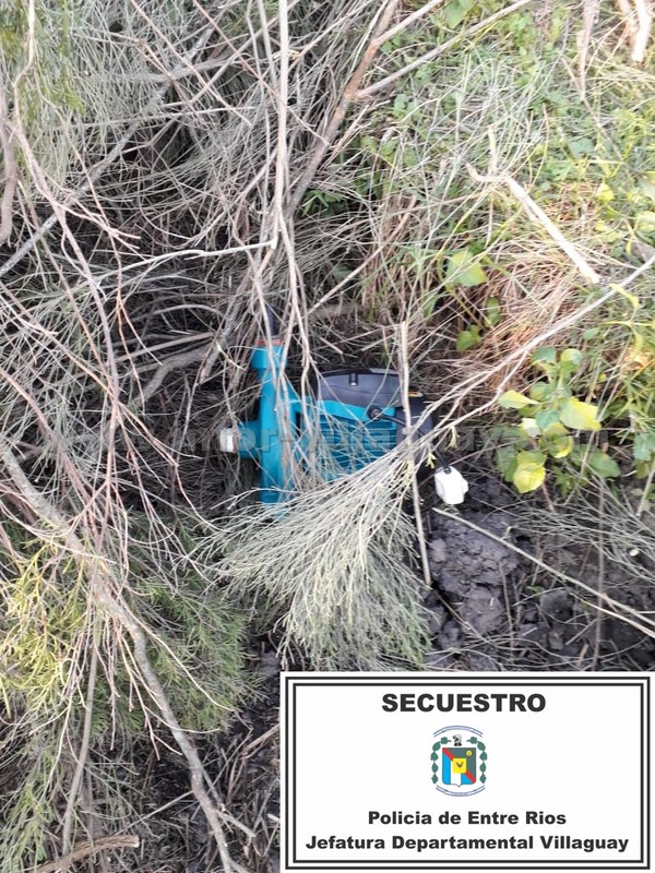 La denuncia fue radicada por un hombre de 43 años de edad propietario de un establecimiento situado en calle Táquela al oeste a quien le sustrajeron del fondo de su propiedad una bomba de agua de marca Leo de color celeste oscuro.