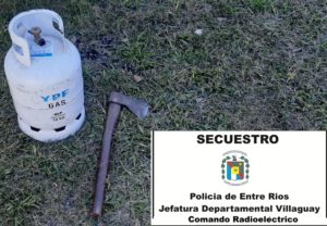 El sábado 11 de junio, personal de la Sección Comando Radioeléctrico a raíz de una denuncia radicada por un vecinos de esta ciudad, procedió al formal secuestro de una garrafa de 10kg y un hacha, elementos que estarían estrechamente relacionados a la denuncia formulada. Habiéndose procedido además a la entrega de estos elementos a su propietario por haber sido dispuesto por la Fiscalía interviniente.-