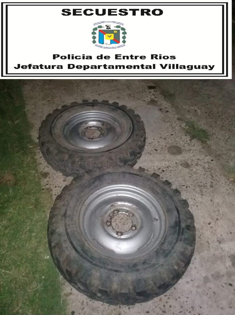 Personal de la Comisaría Primera de la Jefatura Departamental Villaguay secuestro dos ruedas (llantas y cubierta) de un Jeep Ika, las cuales habían sido denunciadas como sustraídas.-