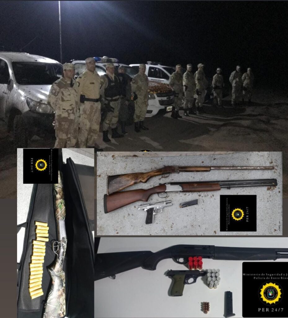 En el departamento Gualeguaychú, la Brigada El Potrero en un Operativo diagramado en el interior de la Reserva El Potrero, el día jueves secuestro una Escopeta calibre 16, identificando a dos personas mayores de edad que estaban realizando la actividad cinegética sin la documentación correspondiente. Como así también fuera de la Reserva, en calle 2 y 10, durante el viernes 21 del corriente interceptaron un vehículo con dos masculinos a quienes se les secuestró 01 Fusil calibre 308 en circunstancias que se encontraban en evidente actitud de caza y carecían de la documentación legal.