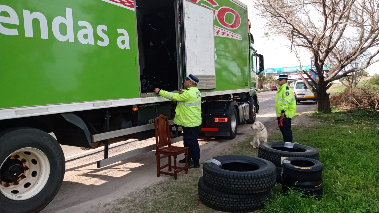 En las primeras horas de la mañana, el personal policial destacado del Puesto Caminero Tunel que se encontraba realizando ininterrumpido e inclaudicable trabajo de prevencion pública en operativo de control vehicular y personas frente a dependencia en pos del bienestar general de toda la entrerrianía, logra detener la marcha de un camión tipo tractor de carretera marca MERCEDES BENZ perteneciente a una empresa de encomiendas el cual hacia su ingreso a territorio provincial desde Santa Fe. El mismo era conducido por un hombre mayor, domiciliado en la ciudad de Gualeguaychu, Entre Ríos y que a su vez traccionaba un semirremolque. Debido a que se encontraba precintado y ante el posible transporte de alguna mercaderia sin amparo legal aduanero, se procedió a dar intervención a personal de aduana Parana, quien una vez presente en el lugar y autorizado por el Juzgado Federal de Paraná, cumpliendo los recaudos legales, mediante acta de apertura e interdiccion del transporte, encontró dentro de su carga un total de 14 neumático de diferentes rodados R22.5 -R15 y R16C de origen chino, los que se realiza al formal secuestro y posterior depósito en la Aduana Paraná debido a que no se cuenta con el aval aduanero correspondiente. Dentro del control también se realizo el paso del can antinarcóticos Kamal, arrojando resultado negativo.