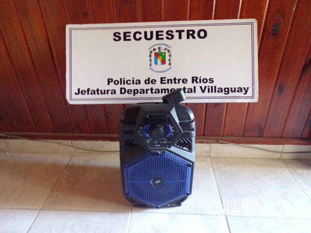 A raíz de tareas investigativas llevadas a cabo por personal de la División Investigaciones de esta Jefatura de Policía Departamental Villaguay, por una denuncia radicada el 25 de enero en la Sección Robos y Hurtos de dicha dependencia, donde una joven de 25 años de edad manifestaba la sustracción de un Parlante Inalámbrico marca NOGA, se procedió en la fecha al formal secuestro del mismo y su respectivo cargador, elementos estos que fueron entregados de manera voluntaria por una señora de 30 años de edad, domiciliada en la zona Sur Oeste de la ciudad, quien los habría adquirido de “buena fe”. Fueron informadas las autoridades judiciales del procedimiento quienes ordenaron la restitución de los elementos a su propietaria. Intervino además personal de Criminalística para sus fines específicos.