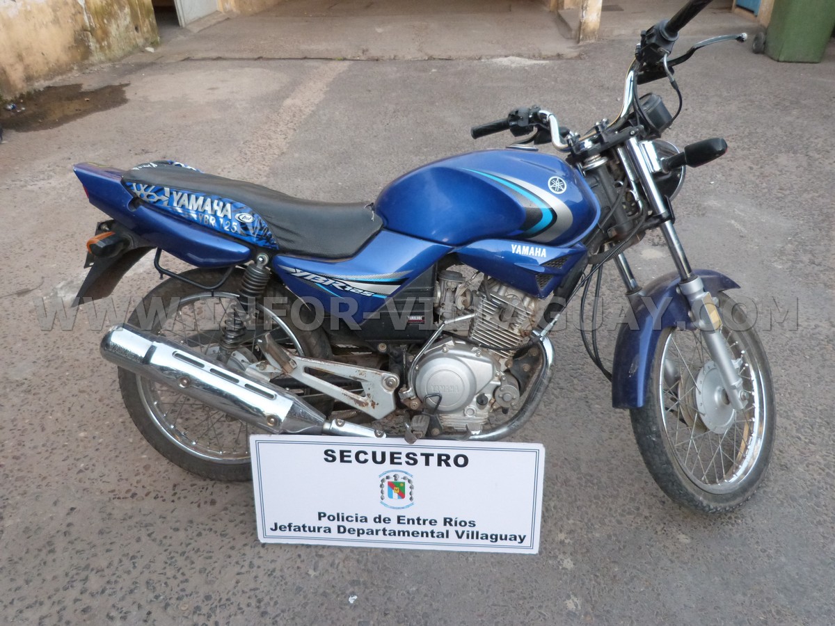 Personal de la División Investigaciones en horas de la tarde de ayer y a raíz de una denuncia radicada por una señora de 34 años de edad en la Sección Robos y Hurtos de esa División, en la que manifestaba la sustracción de una moto de su propiedad. Tras diversas tareas investigativas se logró localizar el moto vehículo oculto en un predio baldío sito en calle Federick y Castello de esta ciudad. El rodado, una moto marca Yamaha modelo YBR 125cc., se encontraba completa sin signos aparentes de violencia en sus partes. Por tal motivo con conocimiento de las autoridades Judiciales se procedió a realizar el formal secuestro de la misma y posterior entrega a su propietaria mediante acta de estilo.