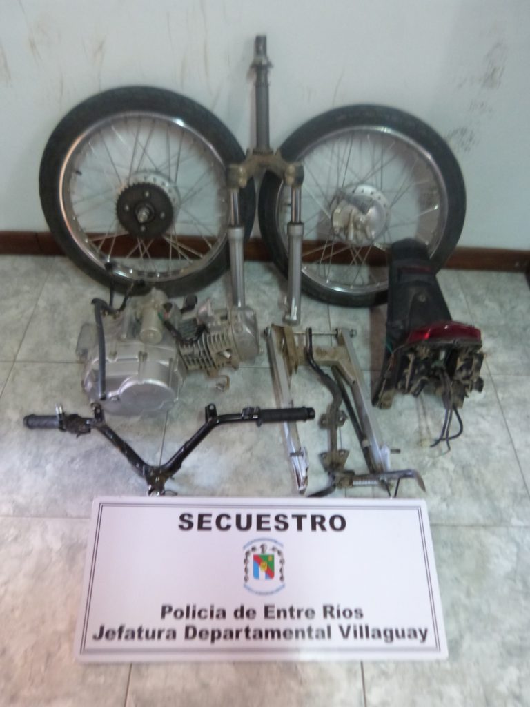 En horas del mediodía personal de la División Investigaciones que realizaba un rastrillaje en la zona sur entre Calle Buenos Aires y el Boulevard Paysandú, producto de datos surgidos de la investigación iniciada a raíz de la denuncia efectuada por una señora de la sustracción de una moto de su propiedad, encontró en un terreno baldío oculto entre malezas y tapada con una manta, gran parte de una moto marca Honda Wave de 110 cc que se correspondían al motovehículo denunciado oportunamente. Informadas las autoridades judiciales, se procedió al formal secuestro de dichos elementos. Continuándose con las actuaciones de rigor.