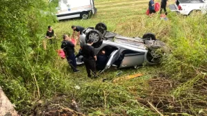 Un auto volcó este miércoles al mediodía en proximidades de uno de los accesos a Paraná, en la ruta 12 en inmediaciones de la localidad de Sauce Montrull.