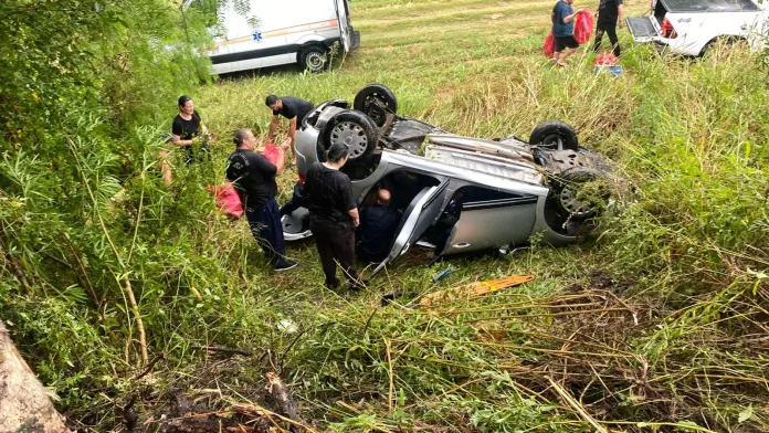 La pérdida de control del vehículo desembocó en el vuelco, que se produjo cerca de un arroyo pero afortunadamente en un sitio sin agua, explicaron fuentes policiales.