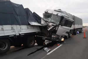 En la madrugada de este miércoles, alrededor de las 4:30 horas, se produjo un accidente vial en la ruta 14, a la altura del kilómetro 17, en dirección Sur-Norte. El siniestro involucró a dos camiones de gran porte, uno de los cuales fue colisionado por detrás mientras circulaba por la mencionada ruta.