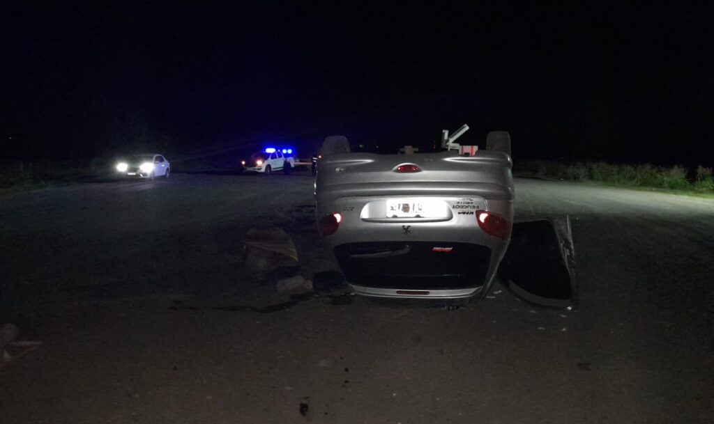 Como protagonista tuvo lugar un automóvil marca Peugeot modelo 206 el cual se encontraba volcado, con sus cuatro neumáticos hacia arriba, sobre el carril sur del desvío existente; siendo conducido por un hombre de 30 años quien iba acompañado por otro ciudadano de 48 años, por motivos que se tratan de establecer al llegar al desvío, el conductor pierde el control del rodado, provocando el vuelco, resultando sin lesiones sus ocupantes. Intervino personal de Comisaria General Urquiza, Dirección de Seguridad y Prevención Vial Puesto Caminero Villaguay, División Criminalística y Mecánico policial en turno.-