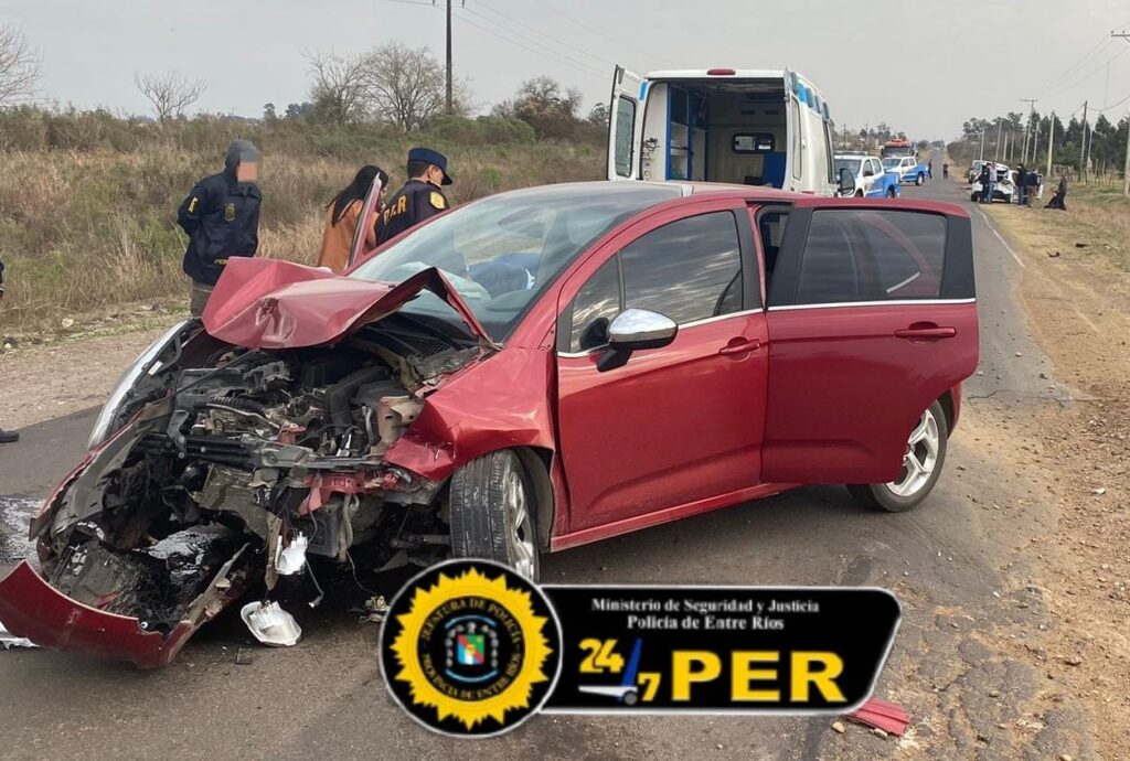 Siendo las 10:20 horas, personal de esta Jefatura Departamental, tomo intervención en un accidente de tránsito ocurrido en la Ruta Provincial N° 38 a la altura del km 3, donde por causas que se investigan colisionaron dos automóviles, un citroen modelo C3, al mando de una ciudadana de (49) años de edad, acompañada de sus hijos de (17) y (20) años de edad, todos domiciliados en Concepcion del Uruguay y el restante un Citroen modelo C4 Lounge, conducido por un individuo de (46) años de edad, acompañado por tres personas de (32), (53) y (55) años de edad, todos con domicilio en el departamento Gualeguaychu e integrantes de AGMER que se dirigían a esta ciudad para participar del Congreso Extraordinario para abordar cuestiones salariales del Gobierno.
