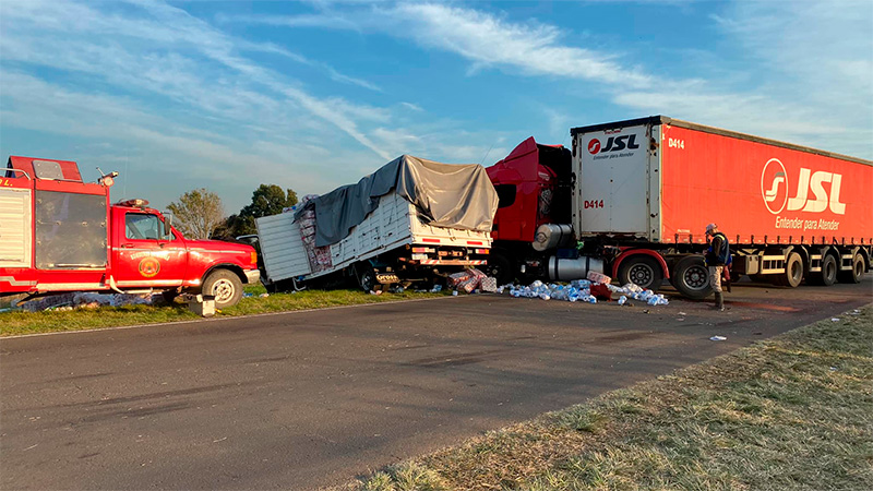 Dos camiones colisionaron de frente en la madrugada de este martes en Ruta 6, a la altura del puente Obispo (en el departamento Tala), y como consecuencia del violento impacto, uno de los choferes perdió la vida. La víctima fatal sería un hombre de 30 años oriundo de Larroque.
