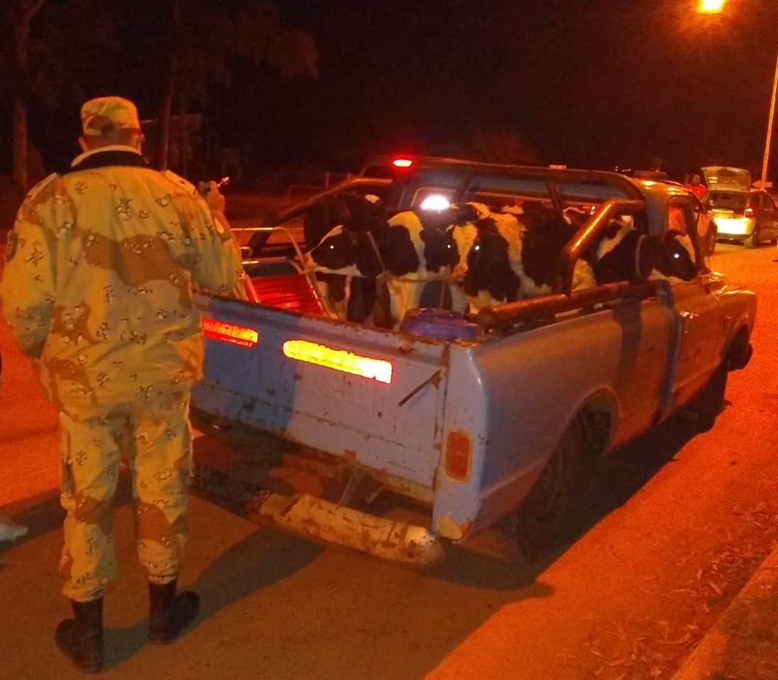PERSONAL DE LA BRIGADA DE PREVENCIÓN DE DELITOS RURALES DE COLON QUE SE ENCONTRABA REALIZANDO CONTROL DE INGRESO EN LA CIUDAD DE SAN JOSÉ POR CALLE ESTRADA, DETIENE LA MARCHA DE UNA CAMIONETA CHEVROLET S 10 CONDUCIDA POR UN MASCULINO, QUIEN EN EL MOMENTO DEL CONTROL SE APRECIA EN LA CAJA 05 TERNEROS DE RAZA HOLANDO, DE LOS CUALES NO TENIA DOCUMENTACION, GUIA POLICIAL NI CONDICIONES ADECUADAS PARA EL TRASLADO DE LOS ANIMALES. POR TAL MOTIVO SE LABRÓ ACTA DE INFRACCIÓN POR LA RESOLUCIONES DE SENASA Y SE DIO INTERVENCIÓN AL INSPECCIÓN MUNICIPAL PARA PROCEDER A LA RETENCIÓN DEL RODADO YA QUE EN EL MOMENTO DEL CONTROL NO PRESENTA CARNET DE CONDUCIR Y CÉDULA DE IDENTIFICACIÓN DEL AUTOMOTOR, COMO TAMBIÉN NO SE ENCONTRABA SIN SEGURO OBLIGATORIO.