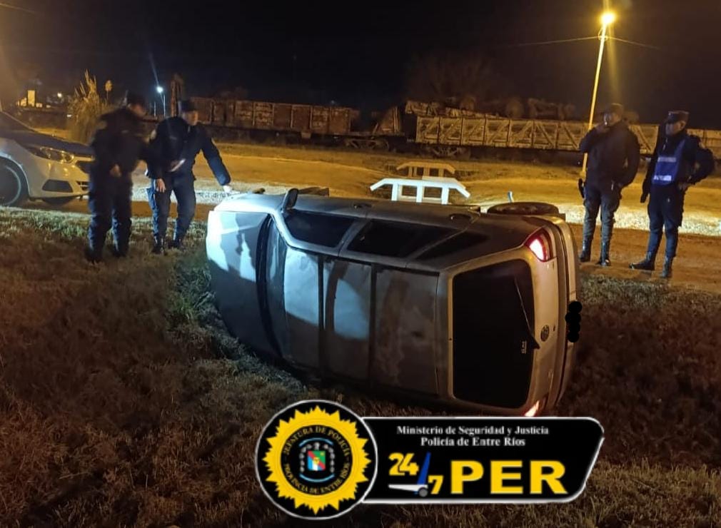 Siendo las 20:00 horas, personal de Comisaria de Minoridad y Violencia Familiar, tomo intervención en un accidente de tránsito ocurrido en calle Alfredo Gerchunoff a metros de Avenida de Los Rusos de esta ciudad, donde por causas que se investigan, un automóvil marca Volkswagen modelo Gol, al mando de un ciudadano de 69 años de edad quien perdió el control del rodado y volcó en una alcantarilla, sin resultar lesionado.