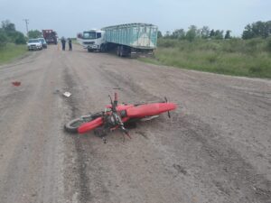 Inmediatamente se hace presente en el lugar una dotacion policial, corroborando el accidente de transito, en el cual tomara participacion una motocicleta y un camion con acoplado.
