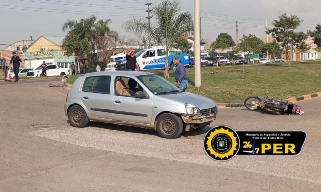 Siendo las 12:20 horas, personal de Comisaria de Minoridad y Violencia Familiar, tomó intervención en un siniestro vial ocurrido en la intersección de calle Misiones y Boulevard Concordia, donde por causas que se tratan de establecer colisionaron un Renault Clio, conducido por un hombre de 58 años de edad, y una motocicleta marca Honda Wave 110 cc, la que se encontraba al mando de una mujer de 36 años de edad.