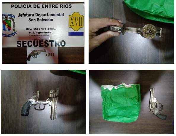 En comunicación directa con la fiscalía en turno se ordena la intervención de la Seccion Criminalistica a los fines se proceda a realizar las tareas de secuestro y posterior estudio, tratándose a primera vista de un arma de fuego tipo revolver, quedando supeditado a la causa iniciada en esta Jefatura de Policia.