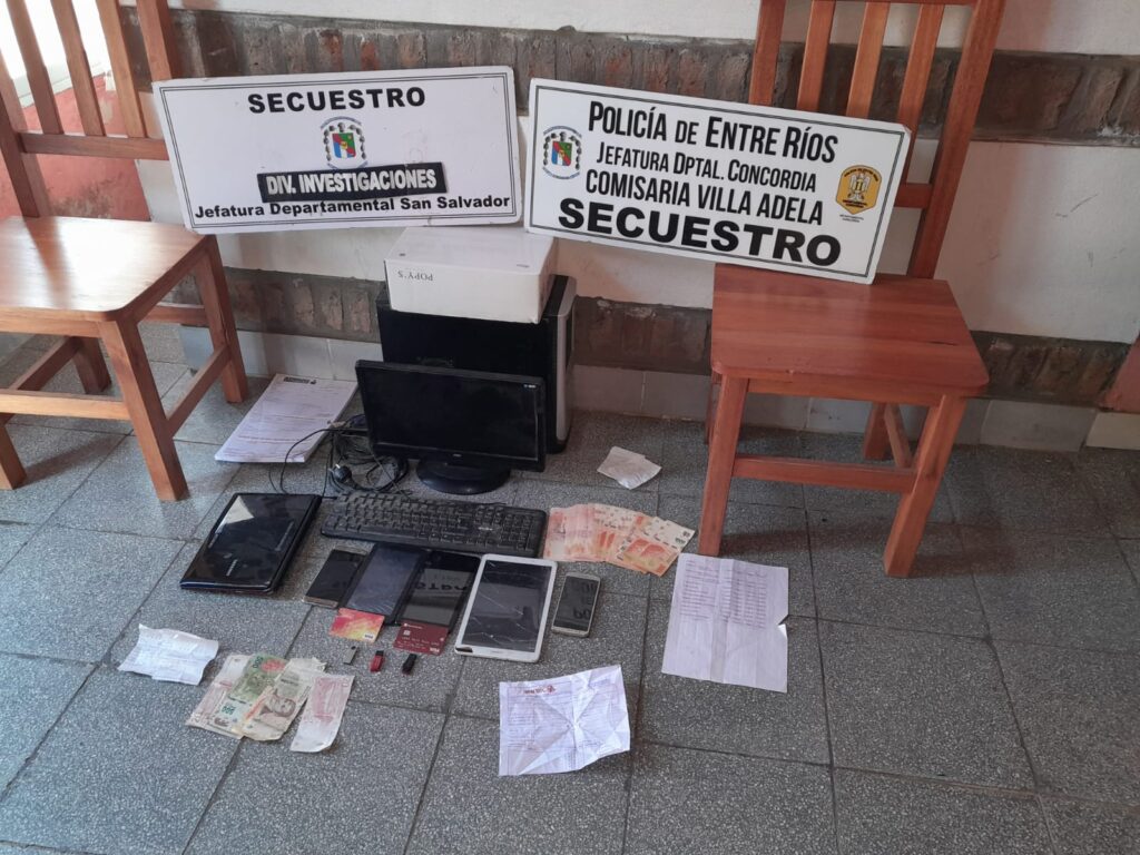 Otorgados los oficios respectivos en la fecha y con la colaboracion de la Division Investigaciones de la ciudad de Concordia se dan inicio pasados el medio dia de la fecha los allanamiento y registros domiciliarios, arrojando resultados positivos, lograndose incautar elementos electronicos, documentacion y dinero en efectivo, todo relacionado al hecho delictivo perpetrado en esta ciudad de San Salvador.