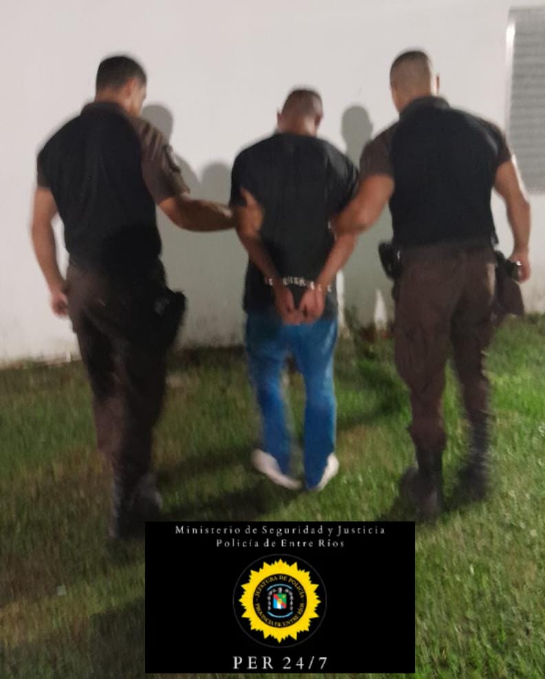 A la brevedad, una dotación policial de la Guardia Especial y motorizada se hizo presente, logrando localizar al agresor en cercanias del lugar del hecho, quien tenia en su poder un cuchillo, siendo inmediatamente aprehendido y por orden del Agente Fiscal en turno quedo detenido en esta Jefatura Departamental a disposicion judicial, supeditado a la causa penal por HOMICIDIO EN GRADO DE TENTATIVA.