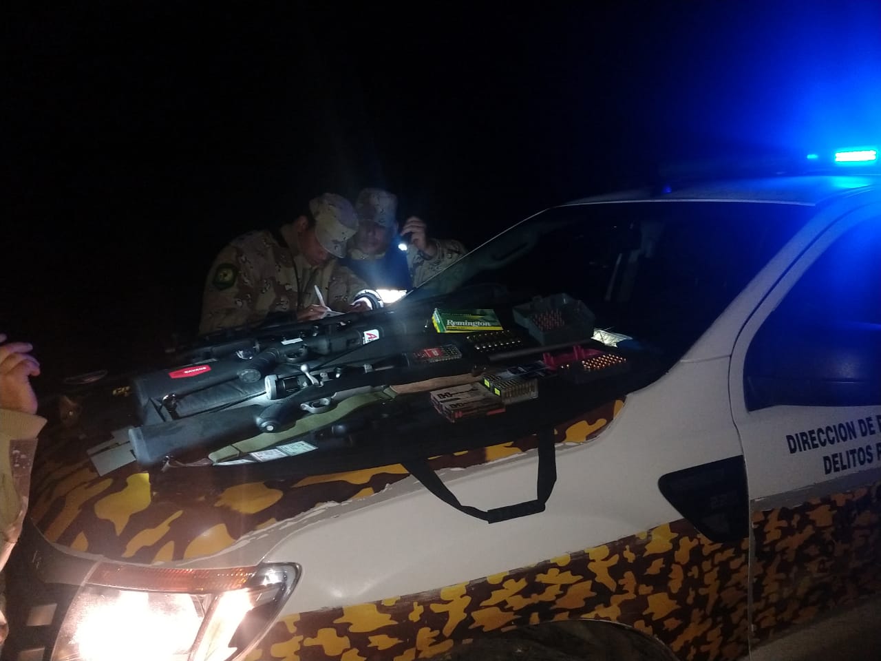 En la noche de deste Domingo, un productor de la zona rural del Ejido Sur de Santa Elena, departamento La Paz, sorprendió a tres cazadores furtivos incursionando en el interior del establecimiento, por tal motivo requirió Presencia policial, al lugar acudieron móviles de la Brigada de Prevención Delitos Rurales La Paz y personal de Comisaría Santa Elena; los uniformados en el Establecimiento Santa Sofía constataron una camioneta, con tres ocupantes, dos con domicilio en la ciudad de Paraná y un funcionario policial oriundo de Santa Elena; luego de Identificar a los individuos que se encontraban en actitud de caza en el interior de un establecimiento Rural del cual no contaban con autorización, Perosnal brigadista realizó un acta de Infracción a la Ley Provincial de Caza N° 4841, procediendo al Secuestro de tres armas de fuego largas, entre ellas: una (01) carabina de repetición Cal .300, una (01) carabina semiautomática Calibre .22 PLG con mira telescópica y puntero lacer; y una (01) carabina de repetición Calibre .308 PLG Winchester con mira telescópica; se realizó el procedimiento ante la presencia de testigos civiles y en presencia del dueño del establecimiento.