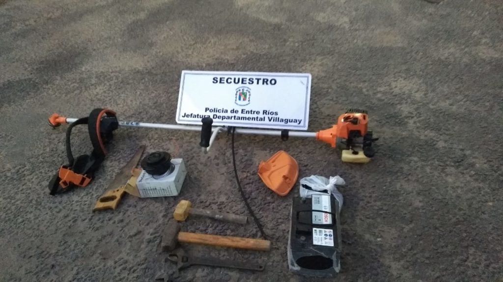 Después de tareas investigativas realizadas a raíz de una denuncia radicada por un vecino, Personal de Comisaria Primera, con la colaboración de Judiciales, Grupo Especial, Comando y Minoridad procedieron a llevar a cabo dos allanamientos con resultado positivo recuperando elementos que habían sido sustraídos días atrás a un vecino en calle Santa Rosa. En los procedimientos realizados en viviendas ubicadas sobre calle Belgrano, se secuestraron una moto guadaña marca Stihl, un TrimCut 41-2 marca Stihl, tres llaves francesas, dos “mazas”, un serrucho, entre otros elementos; los que fueron formalmente secuestrados por guardar relación en la causa de Hurto que se investiga. Se informó a las autoridades judiciales del resultado de ambos procedimientos. Intervino además personal de Criminalística para sus fines específicos