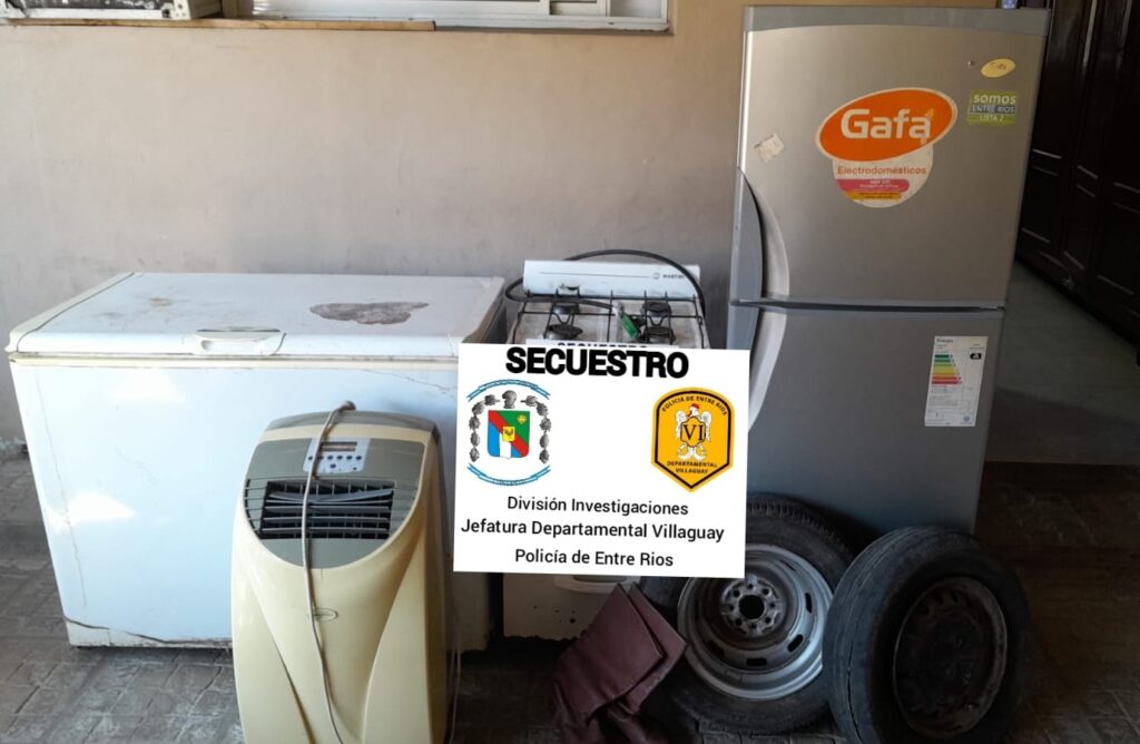 En relacion a denuncia realizada por el supuesto delito de Robo en perjuicio de ciudadana de esta ciudad, el día viernes 29 de septiembre del corriente, personal de la División Investigaciones, luego de realizar diferentes tipos de averiguaciones, lograron recuperar los elementos denunciados como sustraídos siendo éstos: una heladera, un freezer, una cocina de 4 hornallas, un aire acondicionado portátil, dos ruedas completas rodado 13 y un par de botas de montar, de cuero color marrón.