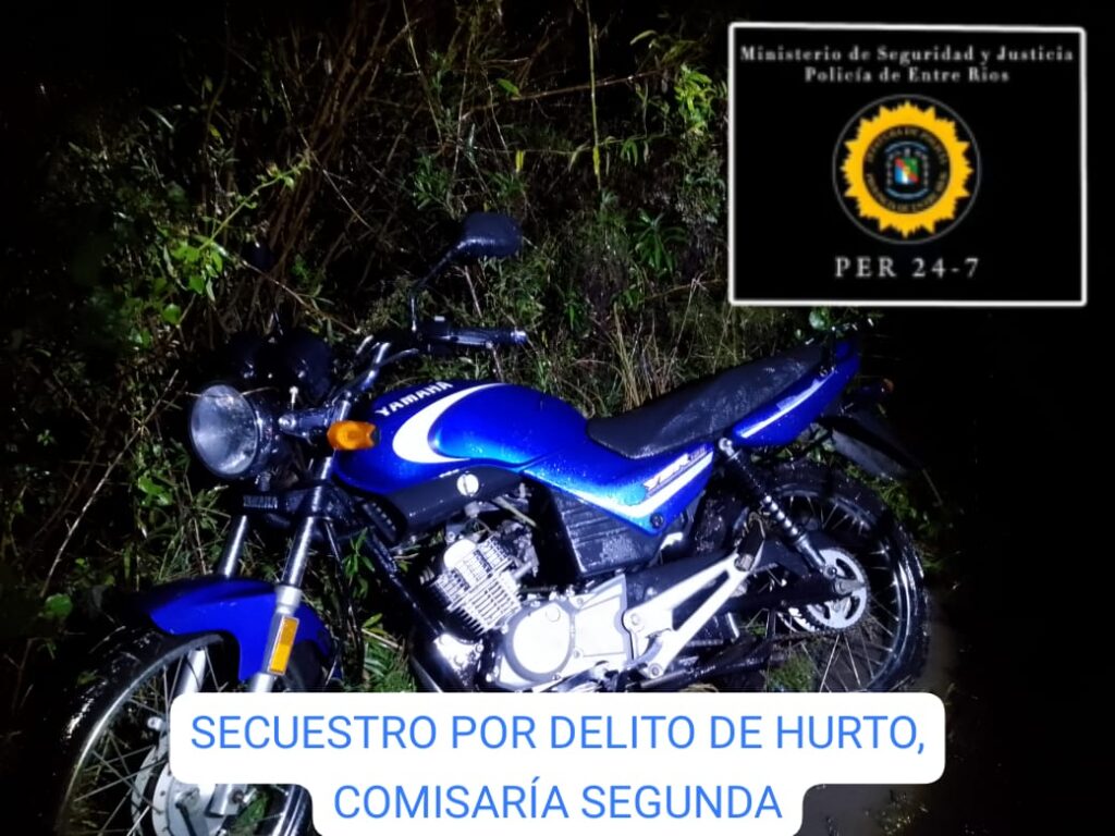 Consecuentemente, personal de Comisaría Segunda abocado al hecho, localiza el rodado tratándose de una motocicleta de marca Yamaha modelo YBR de 125cc la cual estaba oculta entre la vegetación de un campo lindante al lugar de donde se encontraba estacionada. Se procede al formal secuestro y posterior entrega a su propietaria bajo conocimiento de las Autoridades Judiciales.-
