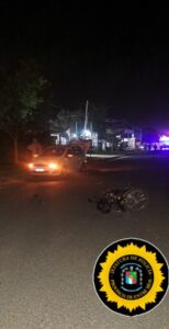 Personal de Comisaria Primera se hace presente en el lugar corroborando que un motovehículo, marca Keller, modelo Unnitec de 110cc, conducido por una mujer quien circulaba por Acceso Carlos Fuertes en sentido Sur a Norte y por razones que se tratan de establecer colisiona con un automóvil marca Volkswagen, modelo Suran el cual se encontraba estacionado; a raíz del impacto la ciudadana debió ser trasladada en ambulancia hacia el Hospital Santa Rosa, siendo examinada por los galenos en turno informando el carácter de las lesiones siendo las mismas graves (fractura de tibia y peroné en pierna.